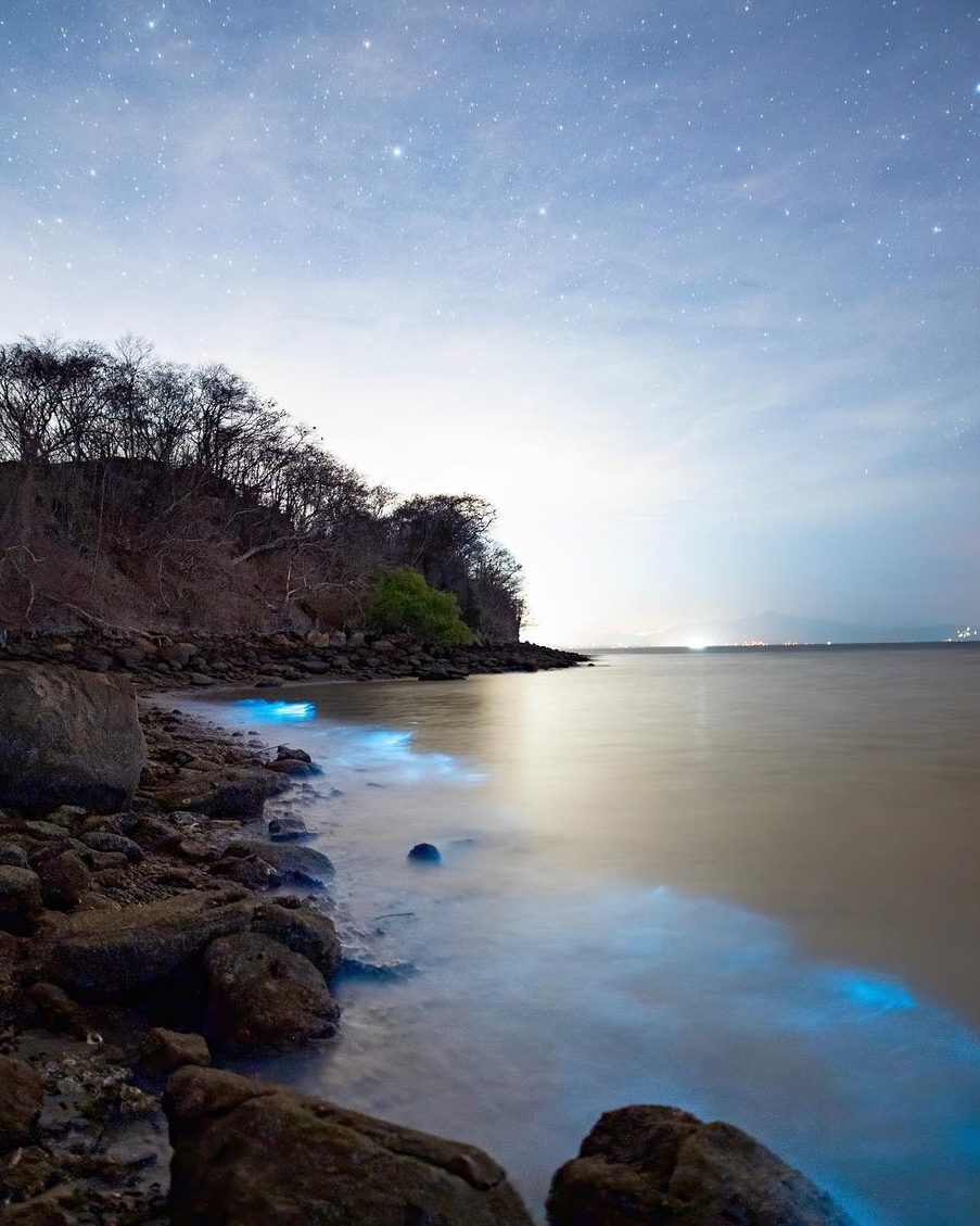 Vive el mágico espectáculo de la Playa Luminosa , donde millones de dinoflagelados iluminan las olas con su brillo azul neón. Nuestros guías expertos te explicarán este fenómeno causado por el Noctiluca scintillans , un organismo que brilla al detectar movimiento en el agua.
